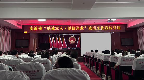 近日,南溪镇举办“以诚立身·以信兴业”诚信文化主题讲座,积极落实加强社会信用体系建设的有关要求,营造“人人讲诚信、事事守信用”的良好社会风尚,镇机关干部、村(社区)居民代表及辖区商户代表共计100余人参加此次活动。