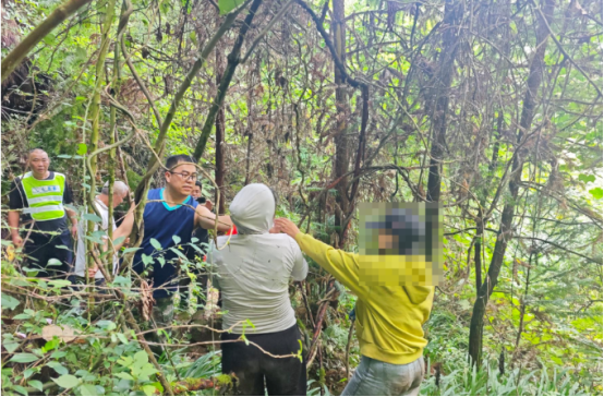 经过近两小时的艰难搜救,当天16时许,救援人员终于在山林深处一片竹林旁听到了微弱的回应声。三人正瘫坐在地、体力明显不支。见到救援人员时,他们激动不已。经初步检查,被困村民除体力透支和轻微皮外划伤外,身体状况基本稳定。救援人员随即分发饮水和食物,并一路搀扶他们沿安全路线下山。
